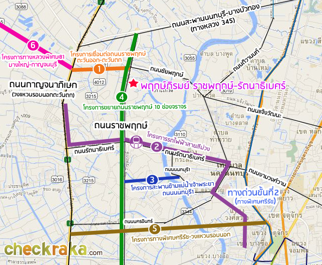 4) โครงการขยายถนนราชพฤกษ์ 10 ช่องจราจร จากเดิม 6 ช่องจราจร (เลข 4 ตามแผนที่ข้างบน)