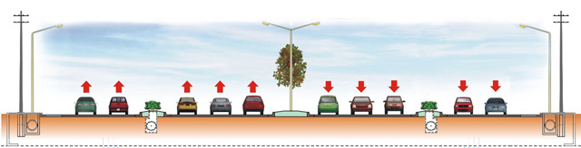 ภาพจำลองถนนราชพฤกษ์เมื่อสร้างเสร็จ 10 ช่องจราจร (วิ่งด้านละ 5 เลน)
