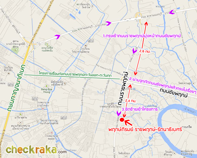 เส้นทางที่ 3 มาทางถนนราชพฤกษ์ด้านเหนือจากถนนสะพานนนทบุรี-บางบัวทอง (ทางหลวง345)