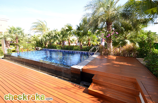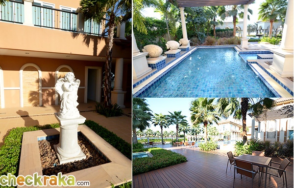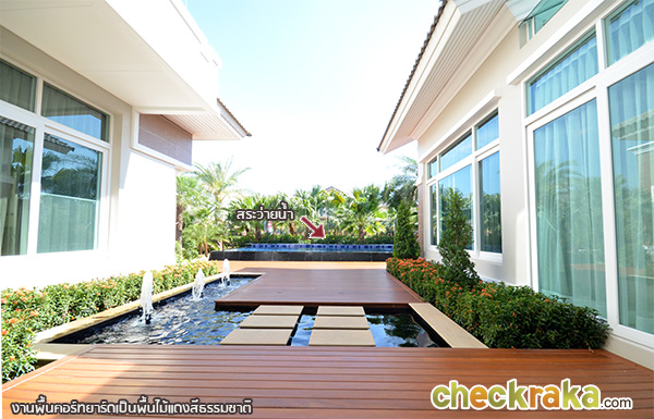 พอเปิดประตูเลื่อนออกมาจากห้องดูหนังจะเจอสระว่ายน้ำหน้าบ้านตามนี้เลยค่ะ