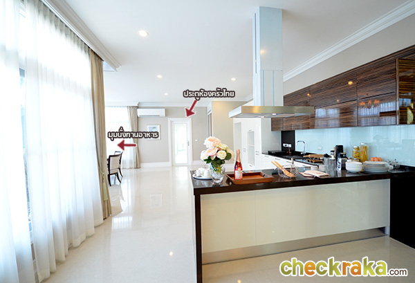 ที่ออกแบบเปิดโล่งเน้นให้ครัวเป็นจุดศูนย์กลางของการทำกิจกรรมของคนในบ้านค่ะ
