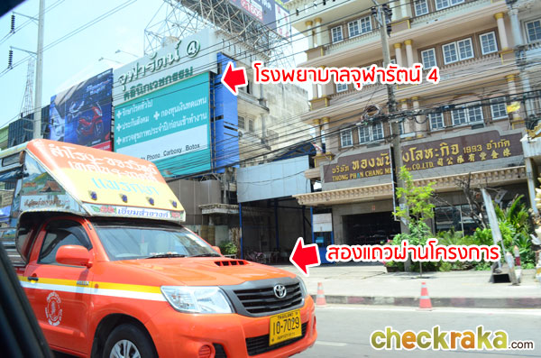 หากมองมาทางซ้ายมือจะเห็นโรงพยาบาลจุฬารัตน์ 4 ตอนที่ถ่ายภาพมีสองแถวที่ผ่านหน้าโครงการวิ่งมาข้างๆ พอดีค่ะ