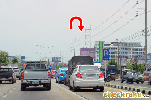 พอผ่านโรงพยาบาลบางนา 5 ทางขวามือ ก็ให้ชิดขวาเพื่อกลับรถ