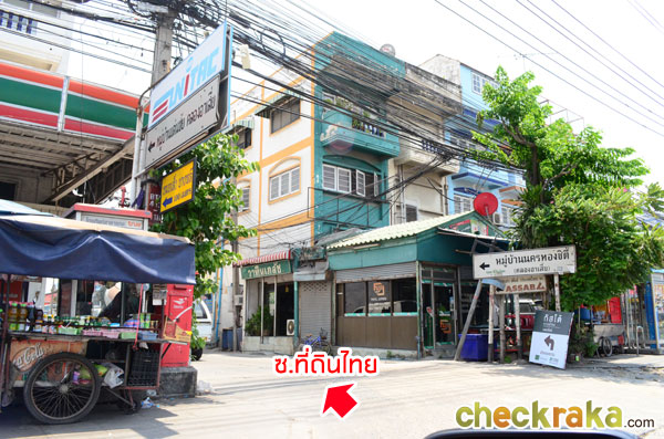 พอกลับรถมาให้ชิดซ้ายเข้าซอยที่ดินไทย ให้สังเกตจะมี 7-Eleven และร้านอาหารริมทางอยู่ด้านหน้าซอย