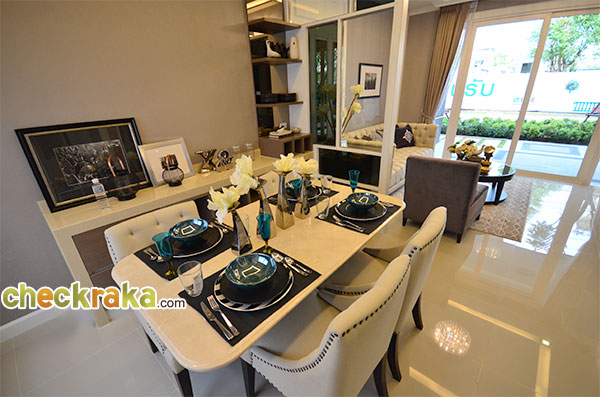 ด้านในเป็นส่วนรับประทานอาหารบ้านตัวอย่างจัดโต๊ะขนาด 4 คนวางได้พอดีกับพื้นที่