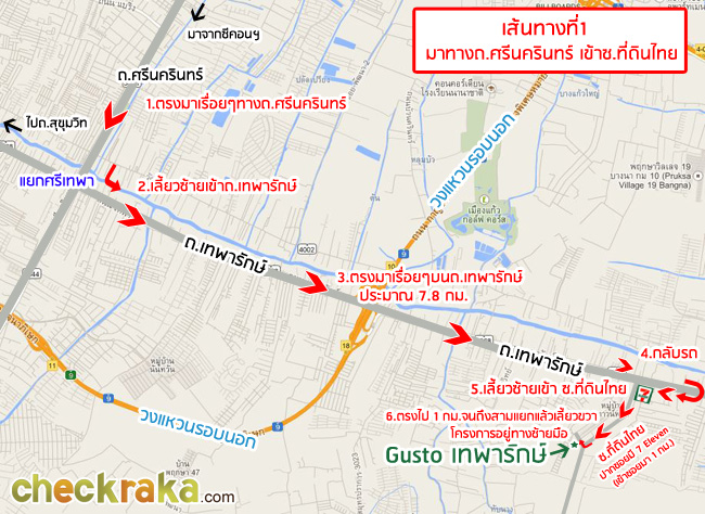 เส้นทางที่1 มาทางถนนศรีนครินทร์ เข้าซอยที่ดินไทย