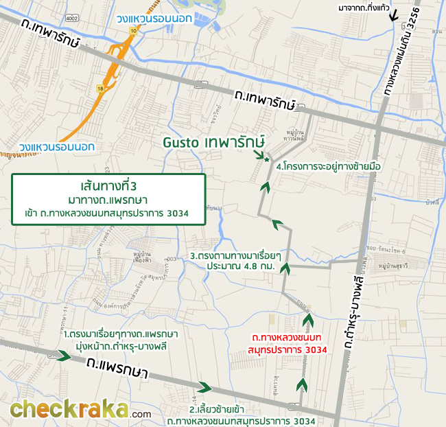 เส้นทางที่3 มาทางถนนแพรกษา เข้าถนนทางหลวงชนบทสมุทรปราการ3034