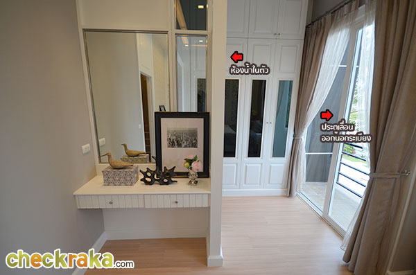 มุม Walk in Closet ทางเข้าห้องน้ำ และประตูทางออกไปที่ระเบียงหน้าบ้าน