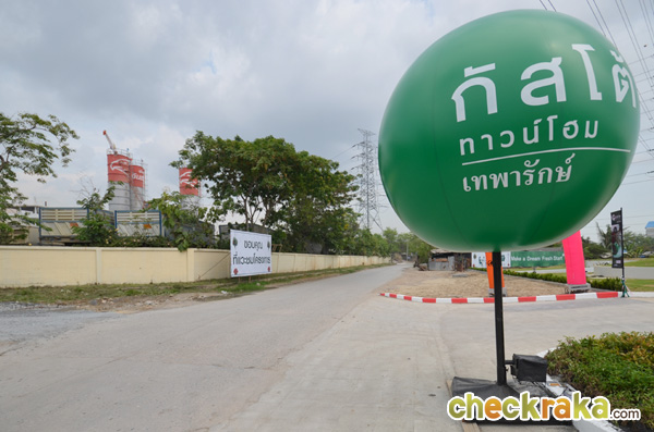 กัสโต้ เทพารักษ์ เป็นโครงการทาวน์โฮมขนาด 2 ชั้น จำนวนบ้านรวม 269 หลัง สร้างอยู่บนแปลงที่ดินขนาด 28-0-48 ไร่ มีส่วนกลางเป็นสวนสาธารณะขนาด 314.70 ตารางวา (ตั้งอยู่ช่วงกลางของแปลงที่ดิน) ตัวโครงการมีทางเข้า-ออกหลักหนึ่งทางซึ่งสามารถเข้า-ออกได้จากทางปากซอยที่ดินไทย ทาวน์โฮมทั้งหมดในโครงการก่อสร้างด้วยระบบสำเร็จรูปแบบหล่อในแปลง โดยโครงการขายบ้านเปล่าแบบสร้างเสร็จก่อนอยู่ แบ่งการก่อสร้าง และขายบ้านในโครงการออกเป็นโซนๆ ปัจจุบัน เม.ย. 57 ได้เปิดขายบ้านในโซนแรกซึ่งอยู่ใกล้บริเวณทางเข้า-ออกหลัก จำนวนบ้านประมาณ 40 หลัง และจัดงาน Pre-Sales เพื่อเปิดขายบ้านอย่างเป็นทางการไปแล้วเมื่อวันที่ 26-27 เม.ย. ที่ผ่านมา