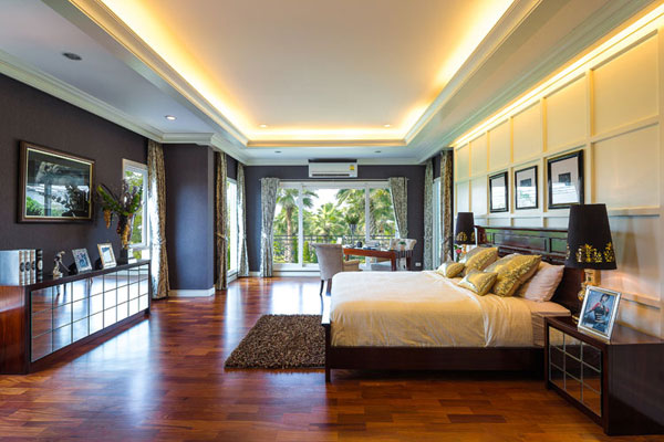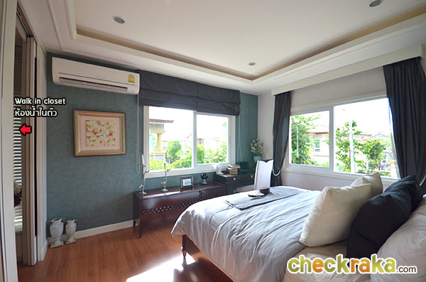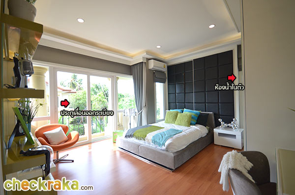 ทีนี้เราเข้ามาดูภายในห้องนอนกันบ้าง เริ่มต้นห้องแรกด้วยมาสเตอร์เบดรูม ห้องนอนใหญ่สุดของตัวบ้าน