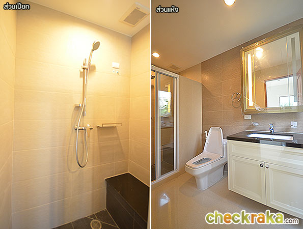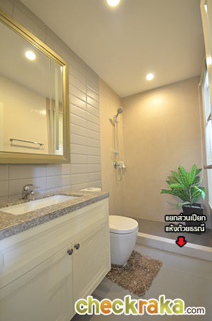ส่วนภายในห้องน้ำทำการแบ่งพื้นที่ส่วนเปียก ส่วนแห้งให้เช่นเดียวกันค่ะ