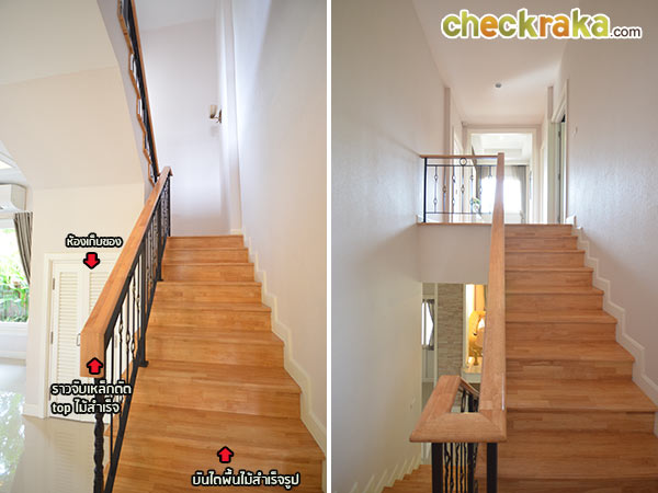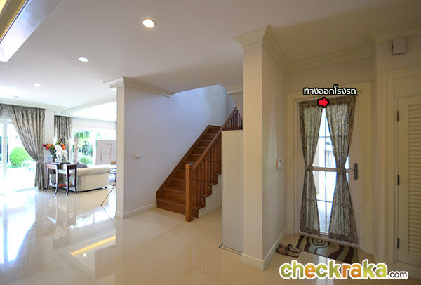 กลับออกมาที่บริเวณกลางบ้าน หันหลังให้ส่วนทานข้าวจะเห็นโถงทางขึ้นบันไดชั้น 2
