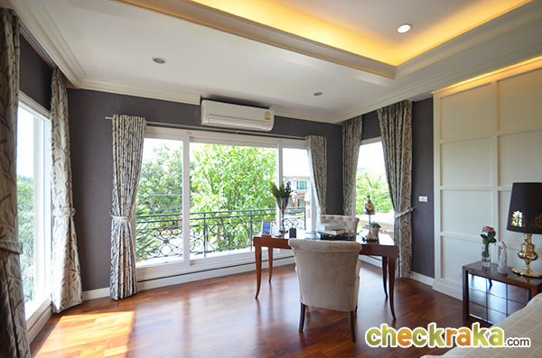 แถมห้องนี้ยังมีระเบียงส่วนตัวด้านหน้า ซึ่งห้องนอนมาสเตอร์เบดรูมที่อยู่ฝั่งตรงข้ามไม่มีระเบียงนะคะ