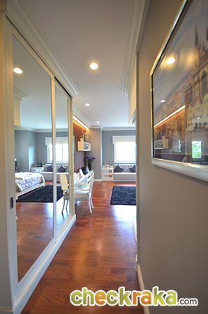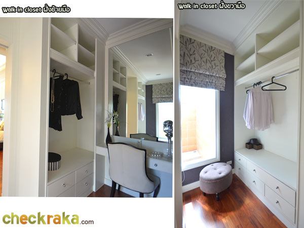 เจาะมุมพื้นที่แต่งตัวและตู้เสื้อผ้าขนาดใหญ่ อย่างพื้นที่ Walk in closet หน้าทางเข้าห้องน้ำภายในตัวค่ะ