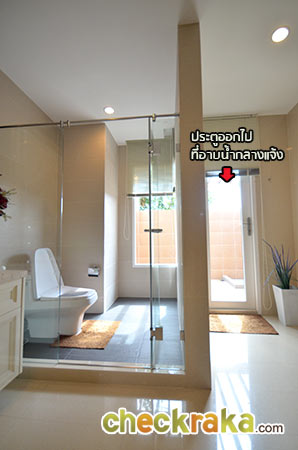 ส่วนฝั่งขวามือของห้องน้ำกั้นส่วนแห้ง และมีประตูเปิดออกไปส่วน OUTDOOR ติดกัน