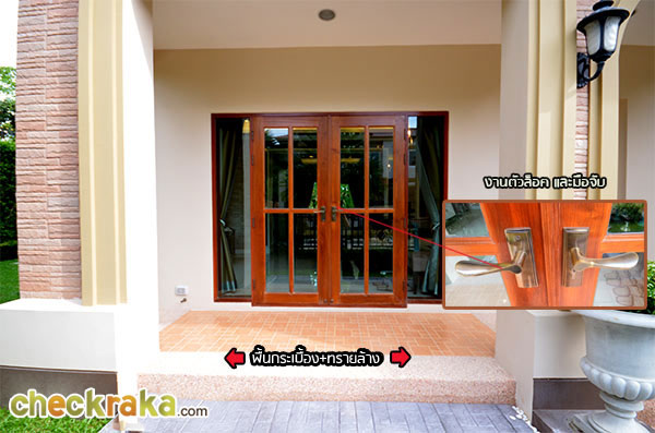 เดินวนจนกลับมาที่บริเวณทางเข้าหน้าบ้าน สังเกตว่าพื้นทางเข้ามีการปูกระเบื้องทางเดิน