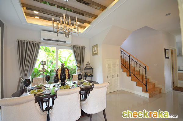 ส่วนรับประทานอาหารพร้อมครัวเบาของบ้าน ถ้าจะทำครัวไทยหนักๆ ต้องเปิดประตูออกไปบริเวณห้องครัวด้านหลังค่ะ
