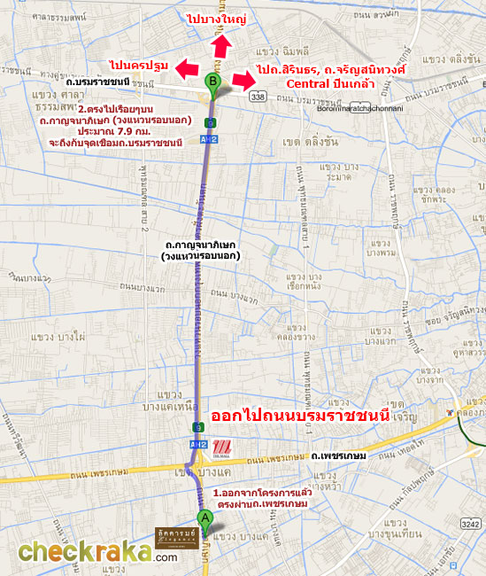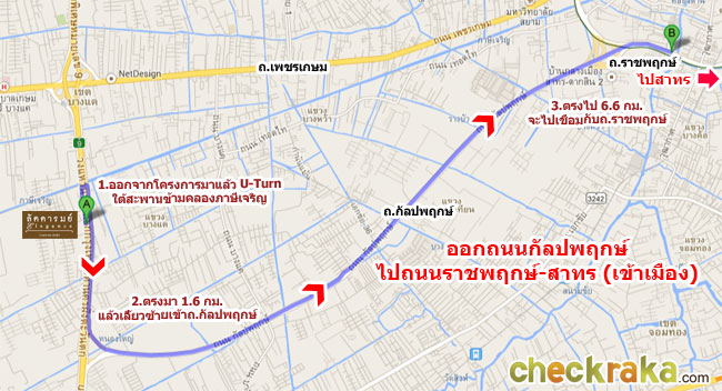 ลองมาดูภาพด้านล่างประกอบตัวอย่างการเดินทางหากมาจากถนนราชพฤกษ์ (จากสาทร) กันนะคะ