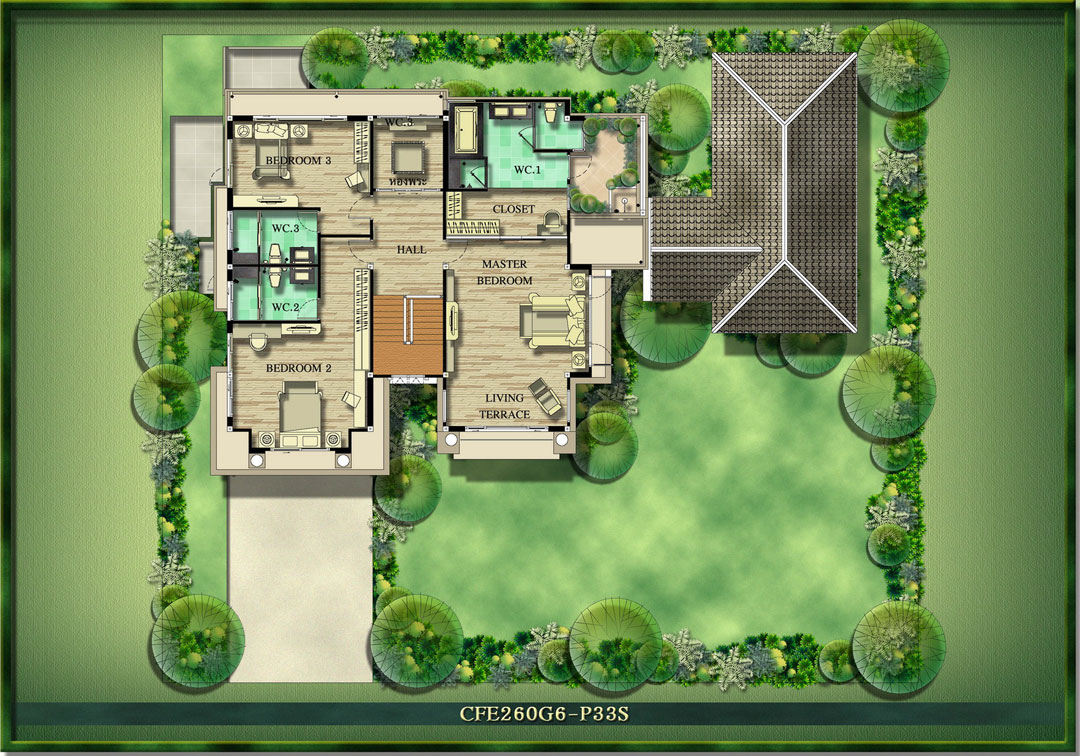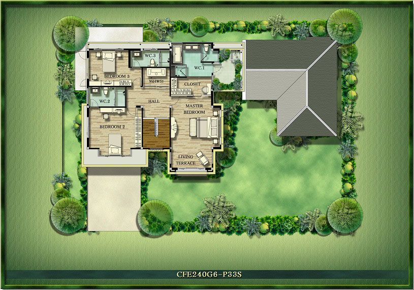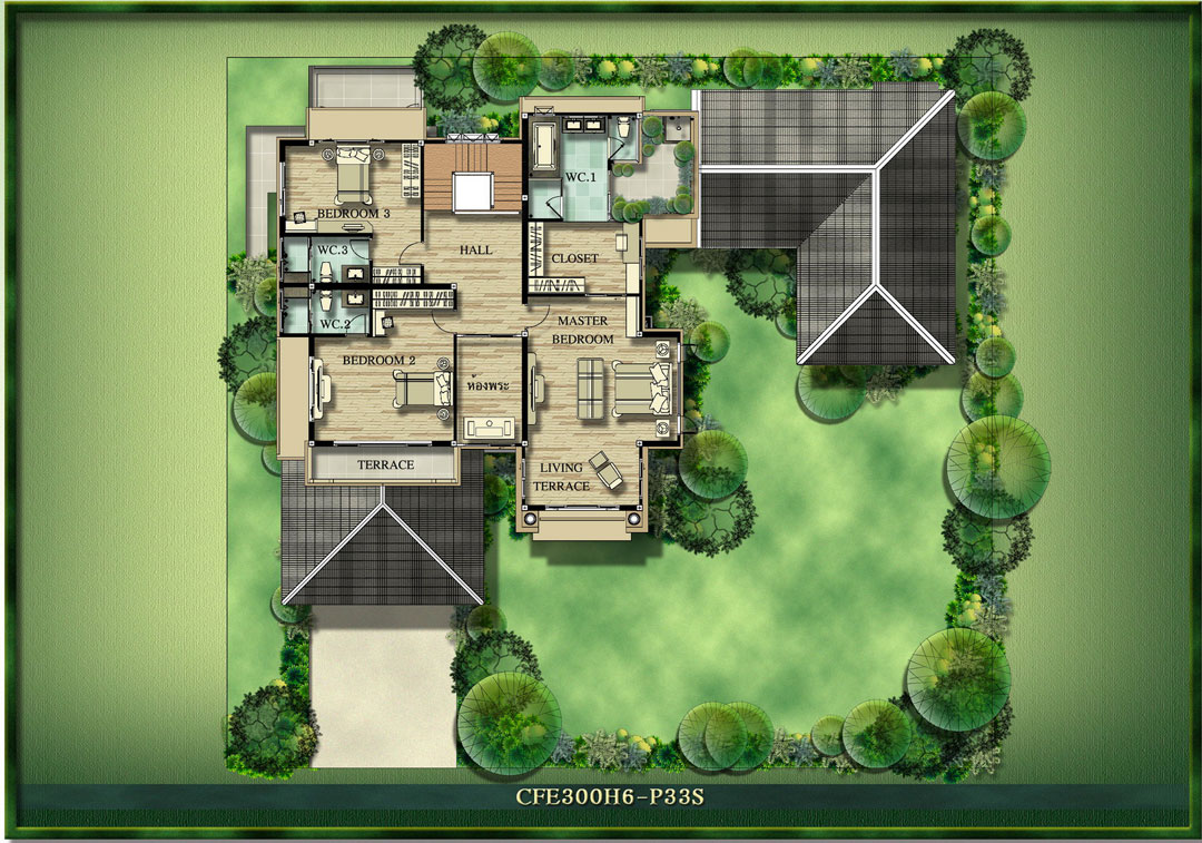 3) แบบบ้าน Silvia พื้นที่ใช้สอย 285 ตร.ม. ขนาดที่ดินเริ่มต้น 87 ตร.วา ขนาด 4 ห้องนอน 4 ห้องน้ำ
