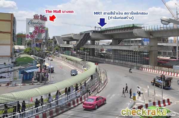 บรรยากาศบริเวณรถไฟฟ้าสายสีน้ำเงิน สถานีหลักสอง จะอยู่บริเวณด้านหน้า The Mall บางแค ฝั่งถนนเพชรเกษม