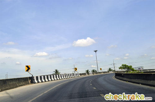 ขึ้นสะพานมาจะเป็นทางวนขวาเพื่อไปลงถนนกาญจนาภิเษก (วงแหวนรอบนอก)