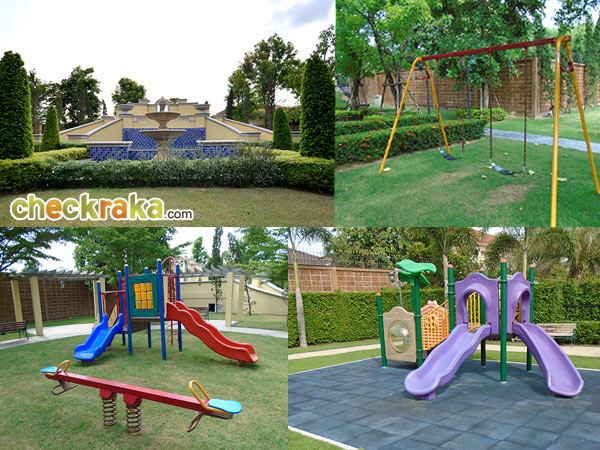- ตัวโครงการโดยรวมและส่วนกลาง - ตัวโครงการในภาพรวมค่อนข้างดูดีตามราคาของบ้าน และไม่หนาแน่น (92 ไร่ 207 หลัง) มีประตูทางเข้า-ออกโครงการ 2 ชั้นเพื่อเพิ่มความเป็นส่วนตัว และปลอดภัย ถนนภายในโครงการโดยรวมค่อนข้างกว้างขวาง และส่วนกลางเน้นดีไซน์แบบฝรั่งอิตาเลี่ยนนิดๆ (Tuscany) ส่วนกลางมีสวน 2 จุด และมีอุปกรณ์สำหรับให้ลูกบ้านพักผ่อนใช้งานได้จริง เช่น สวนกว้างขวาง เครื่องเล่นสำหรับเด็ก ห้องยิม สระว่ายน้ำ ศาลานั่งเล่น และสนามบาสเกตบอลแบบครึ่งสนาม เป็นต้น