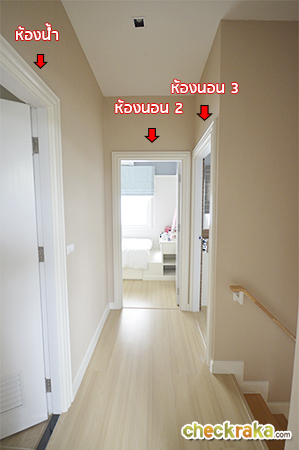 เมื่อขึ้นมาชั้น 2 จะพบกับห้องนอน 2 อยู่ด้านหน้าค่ะ ส่วนขวามือเป็นห้องนอน 3 เป็นห้องนอนที่ขนาดเล็กที่สุดในบ้าน