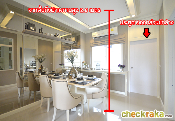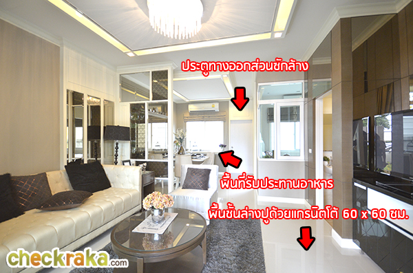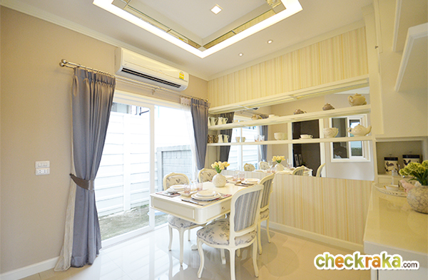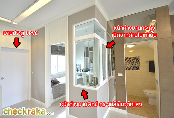ทางโครงการใช้กระจกในการตกแต่งช่วยทำให้บ้านดูกว้างขึ้น