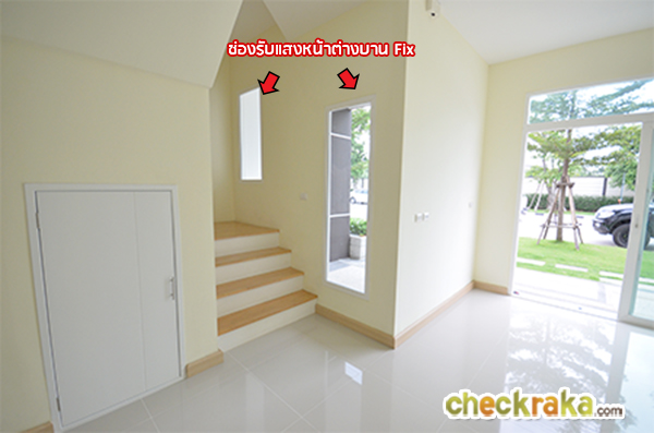 บันไดทางเดินขึ้นชั้น 2 นั้นมีช่องรับแสงตรงโถงบันได ทำให้พื้นที่ตรงบริเวณนี้ดูสว่าง