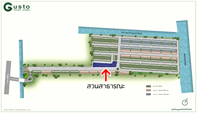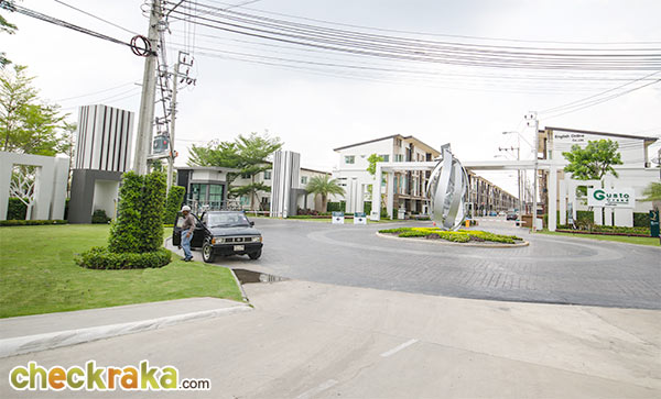- ตัวโครงการโดยรวมและส่วนกลาง - ทางเข้าโครงการจะมีบางส่วนที่จะต้องใช้ร่วมกับ กัสโต้ แกรนด์ รามคำแหง ซึ่งเท่าที่เข้าใจจากทางกัสโต้ ทางร่วมนี้จะใช้ร่วมกันระหว่างผู้อยู่อาศัยใน 2 โครงการนี้เท่านั้น และบุคคลภายนอกอื่นจะไม่มีสิทธิใช้ทางร่วมนี้โดยเด็ดขาด พื้นที่โครงการประมาณ 44 ไร่ โดยมีทาวน์โฮมทั้งหมดประมาณ 469 หลัง บรรยากาศโดยรวมเท่าที่ทีมเราได้มีโอกาสเดินดูถือว่าไม่อึดอัด ส่วนกลางจะมีเพียงสวนสาธารณะเพียงจุดเดียว (ไม่มี Club House และไม่มีสระว่ายน้ำ) ฟังดูเหมือนน้อย แต่ข้อดีก็คือจะทำให้ลูกบ้านไม่ต้องเสียเงินค่าส่วนกลางสูงมากนัก (เก็บอยู่ที่ 29 บาท / ตร.วา)