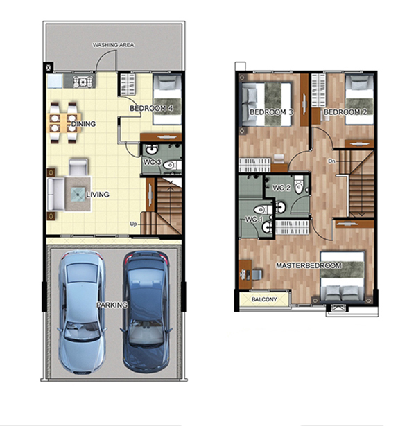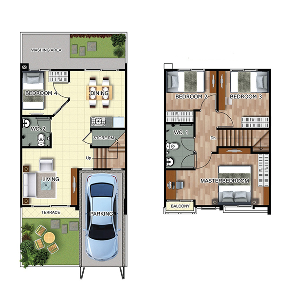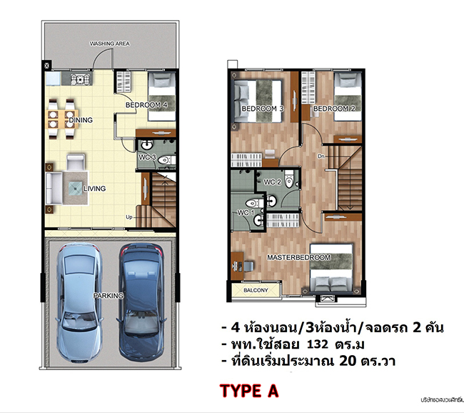 ทาวน์โฮม TYPE A แบบ 2 ที่จอดรถ กับฟังก์ชัน 4 ห้องนอน 3 ห้องน้ำ