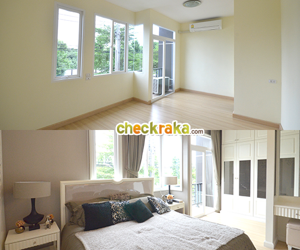 ภาพเปรียบเทียบระหว่างบ้านเปล่ากับบ้านที่ตกตกแล้วของห้องนอนใหญ่ค่ะ