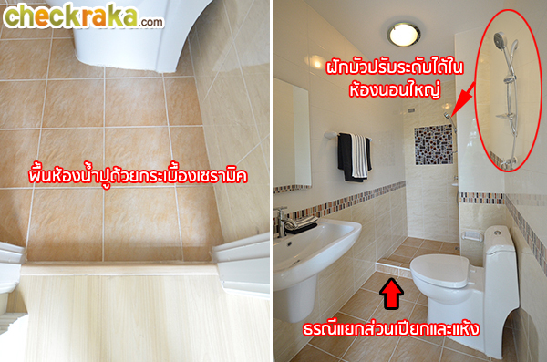 และที่พิเศษกว่าอีกจุดนึงคือมีธรณีแยกส่วนเปียกและส่วนแห้งไว้ให้ พื้นที่ห้องน้ำกว้างกว่าทุกห้องด้วยค่ะ