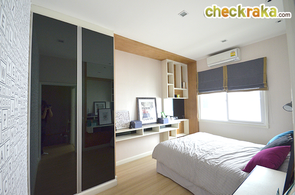 ภายในห้องนอน 2 ตกแต่งไว้อย่างเรียบง่าย ซึ่งทางโครงการจัดบิวท์อินเฟอร์นิเจอร์เป็นตัวอย่าง