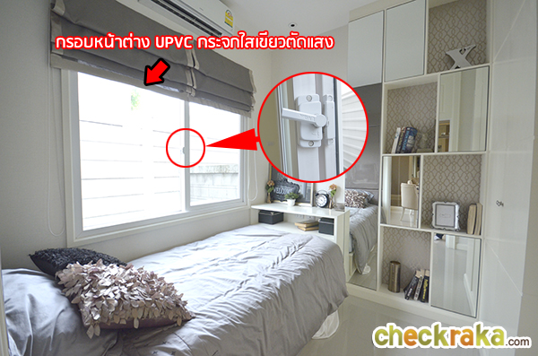ทางโครงการได้เลือกจัดเตียงนอนให้หันหัวไปทางหน้าต่างเพื่อรับแสงยามเช้า