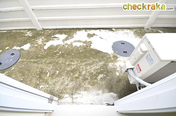 เมื่อเปิดประตูด้านหลังออกไป จะเป็นส่วนซักล้าง เป็นพื้นซีเมนต์ฉาบเรียบค่ะ กั้นระหว่างบ้านตรงข้ามด้วยกำแพงคอนกรีต