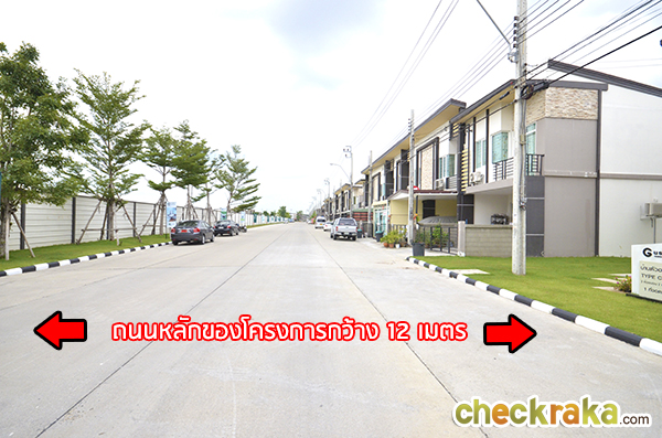 ถนนของโครงการกว้าง 12 เมตร ยาวไปสุดถึงสวนสาธารณะด้านในโครงการค่ะ