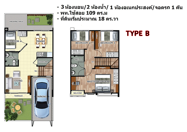 2) บ้านตัวอย่างพร้อม Floor Plan TYPE B