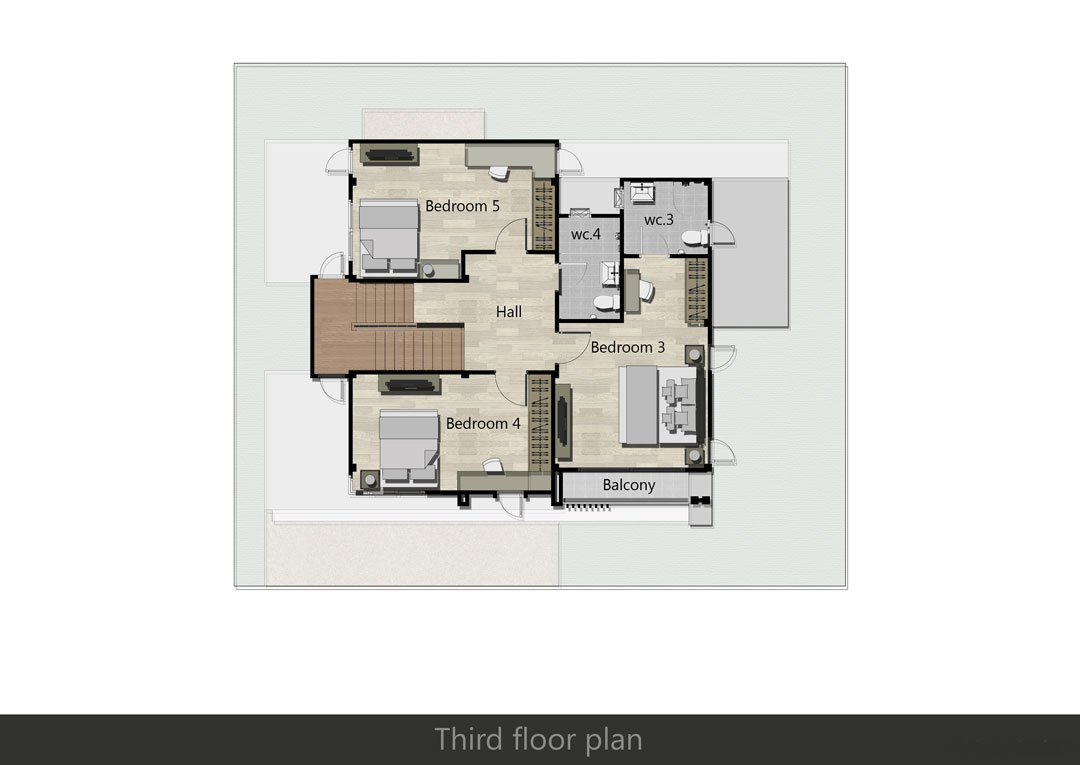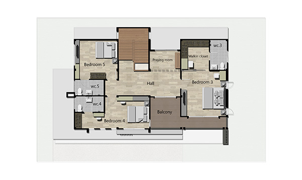 ฟังก์ชั่นห้องต่างๆ บนชั้น 3 ค่ะ ส่วนงานพื้นบ้านชั้นบนเป็นพื้นไม้มะค่าเหมือนกันกับชั้น 2 ค่ะ
