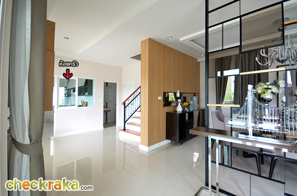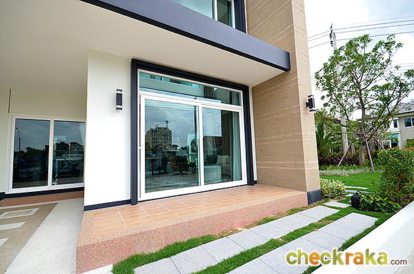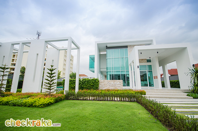 - แบบบ้านโครงการนี้เป็นแบบบ้านรุ่นใหม่ของทาง "คาซ่า" ที่ออกแบบด้วยสไตล์ Modern Contemporary ตัวบ้านแบบใหม่นี้จะเน้นความโดดเด่นของตัวบ้านโดยการใช้ลายเส้นทั้งแนวตั้งและแนวนอนเข้ามาช่วยสริม ช่วยลดความรู้สึกเป็นตึกของบ้านแบบ 3 ชั้น ได้ค่อนข้างดี ส่วนฟังก์ชั่นภายในของตัวบ้านที่นี่จะเน้นการออกแบบให้ห้องนอนทุกห้องเป็นห้องนอนขนาดใหญ่ มีห้องน้ำในตัวครบทุกห้อง โดยเลือกตัดฟังก์ชั่นห้องรับแขกที่ชั้น 2 ของแบบบ้าน 2 ชั้นทิ้งไป ส่วนบ้านแบบ 3 ชั้น ไม่มีปัญหาเรื่องพื้นที่ใช้สอยเลยได้ครบทั้งห้องนอนใหญ่ และฟังก์ชั่นห้องรับแขกที่ชั้น 2 นอกจากนี้ยังโดดเด่นมากตรงพื้นที่รับแขกแบบ Double Volume ที่ชั้น 1 เพราะให้ความรู้สึกถึงความแกรนด์และโปร่งโล่ง ถือว่าการจัดวางพื้นที่ภายในตัวบ้านสอบผ่านทั้งในเรื่องการใช้งานและความสวยงาม