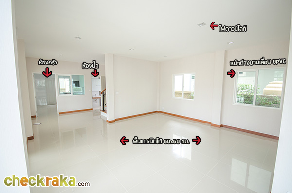 บ้านเปล่านี่ส่วนห้องรับแขกจะโล่งๆ ไม่มีประตูกั้นให้ผลักไปมาอย่างบ้านตัวอย่างนะคะ