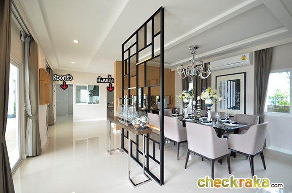 ออกมาจากห้องนอนชั้นล่างจะเจอกับห้องทานข้าว โครงการจัดโชว์ไว้ 8 ที่นั่งขนาดกำลังดีค่ะ