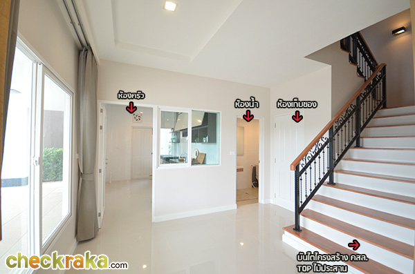 เดินต่อเข้าไปส่วนในช่วงโถงบันไดทางขึ้นของตัวบ้าน กับฟังก์ชั่นห้องต่างๆ ของตัวบ้านค่ะ