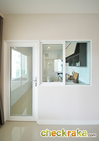 ห้องครัวจัดมาให้ทั้งประตูกระจกและหน้าต่าง ช่วยทำให้ห้องครัวดูโปร่งขึ้นเยอะเลยค่ะ
