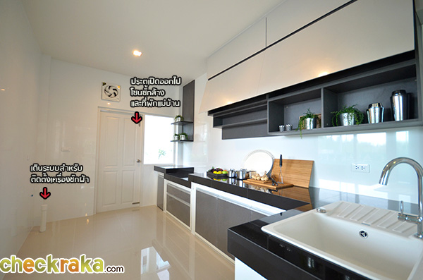 ขาดแค่พวกเตากับเครื่องดูดควัน ส่วนประตูหลังที่เห็นสามารถเปิดออกไปส่วนซักล้างและโซนที่พักของแม่บ้านค่ะ