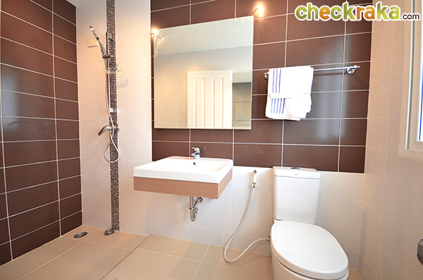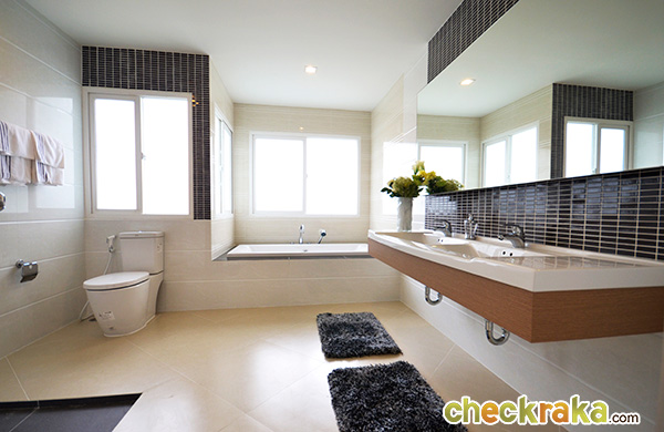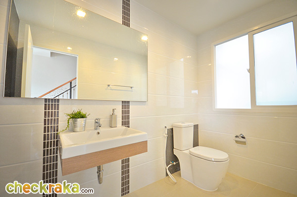 ตบท้ายกันด้วยภาพห้องน้ำส่วนตัวของห้องนอนที่ 3 ที่มีรูปทรงเป็นห้องแนวยาว แบ่งฝั่งโซนเปียกด้านซ้าย