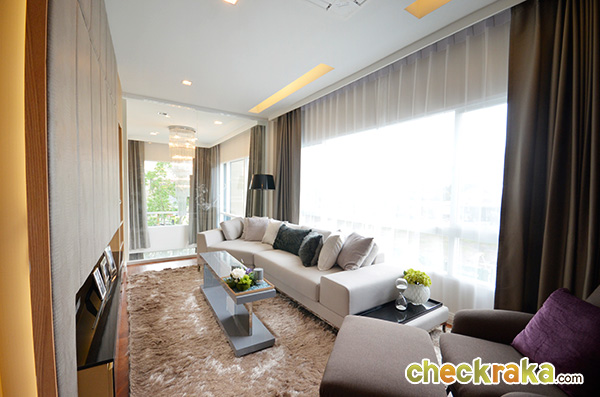 ส่วนบ้านตัวอย่างที่แต่งแล้วแบบจัดเต็ม ห้องรับแขกที่ได้ก็จะหรูหราแบบนี้ค่ะ