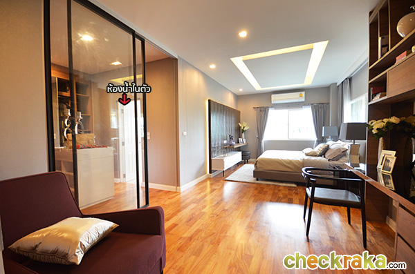โดยพื้นที่ฝั่งซ้ายมือของห้องจัดเป็นส่วนพักผ่อน ส่วนพื้นที่ขวามือจะเป็นส่วนห้องน้ำในตัวค่ะ