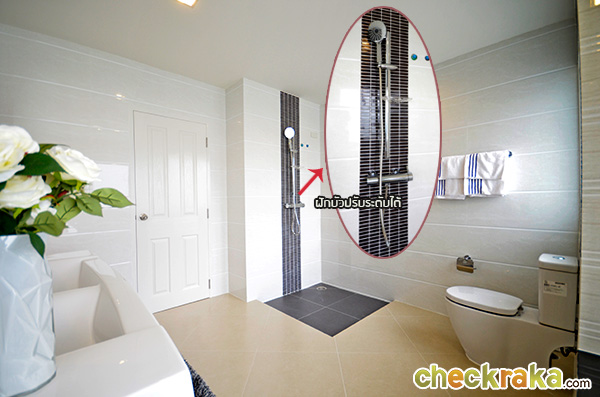 ส่วนโซนอาบน้ำจะอยู่ฝั่งขวามือ พื้นที่ส่วนเปียกนี้มีการลดระดับพื้นมาให้เรียบร้อยค่ะ