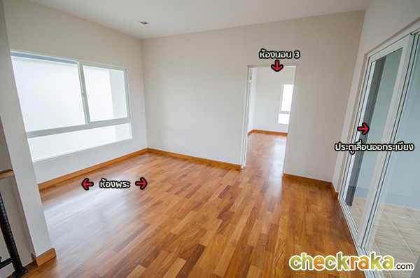 ส่วนบ้านเปล่ามาตรฐานที่ขายจริงห้องจะเป็นโล่งๆ แบบนี้ ไม่ได้กั้นบานเลื่อนมาให้ค่ะ